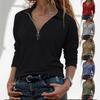 Γυναικεία Ανοιξιάτικα Και Μόδα Casual Μονόχρωμα Μπλουζάκια Με Φερμουάρ V-Λαιμόκοψη Μακρυμάνικα