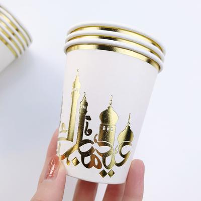 Eid Mubarak Party Home Disposable Tableware Decoration Gold Patterned Paper Plates Cups Napkins Muslim Ramadan Dinner Decor