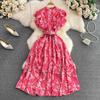YYFS Γυναικεία Μόδα Καλοκαιρινή Άνοιξη Χρώμα Μπλοκ στάμπα κοντό μανίκι O-neck ψηλόμεση casual φορέματα