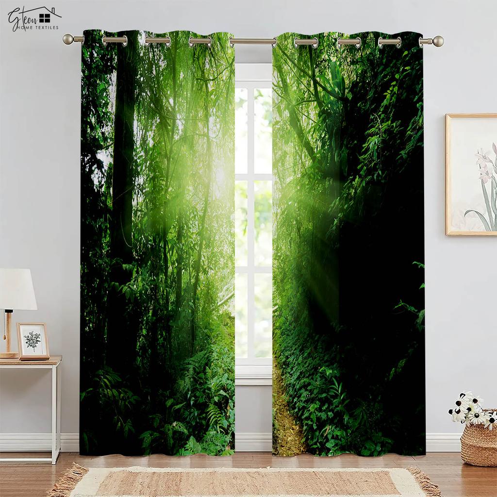Κουρτίνες δάσους 3D εκτυπωμένες τοπίο πράσινο ηλιοφάνεια φύλλο σφενδάμου φύση ζωτικότητα B&B ξενοδοχείο υπνοδωμάτιο σαλόνι κουρτίνες 2 ΤΕΜ