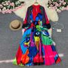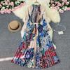 YYFS Γυναικεία Μόδα Άνοιξη Φθινόπωρο με μοτίβο λουλουδιών με μακρυμάνικο λαιμόκοψη Casual φορέματα
