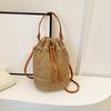 Women Woven Handmade Shoulder Bag Sumple Straw Bucket Bag Drawstring Crossbody Bag Rattan Beach Bag for Gilrs