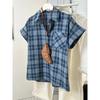 Classic Pocket Letter Embroidery Loose Versatile Korean Version Slimming Short Sleeved Checkered Shirt for Women