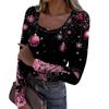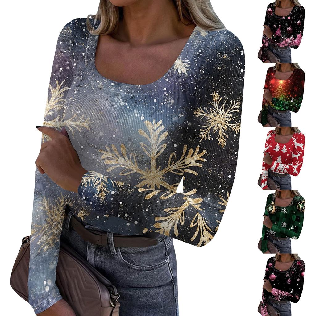Γυναικείο μοντέρνο λεπτό σλιπ, casual, με μακριά μανίκια, χριστουγεννιάτικο τυπωμένο πουλόβερ με λαιμόκοψη U