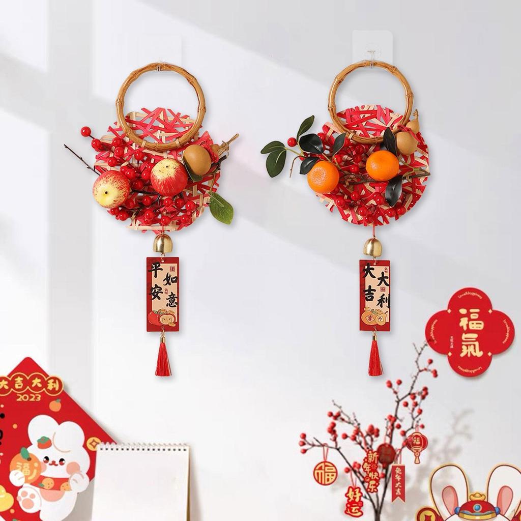 - 【Chinese New Year Decorations】2025 Chinese Snake Year Hanging Decorations with artificial fruit and red berry, with blessing words and red tassel, which symbolizes happiness, wealth, good fortune, and good wishes