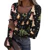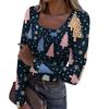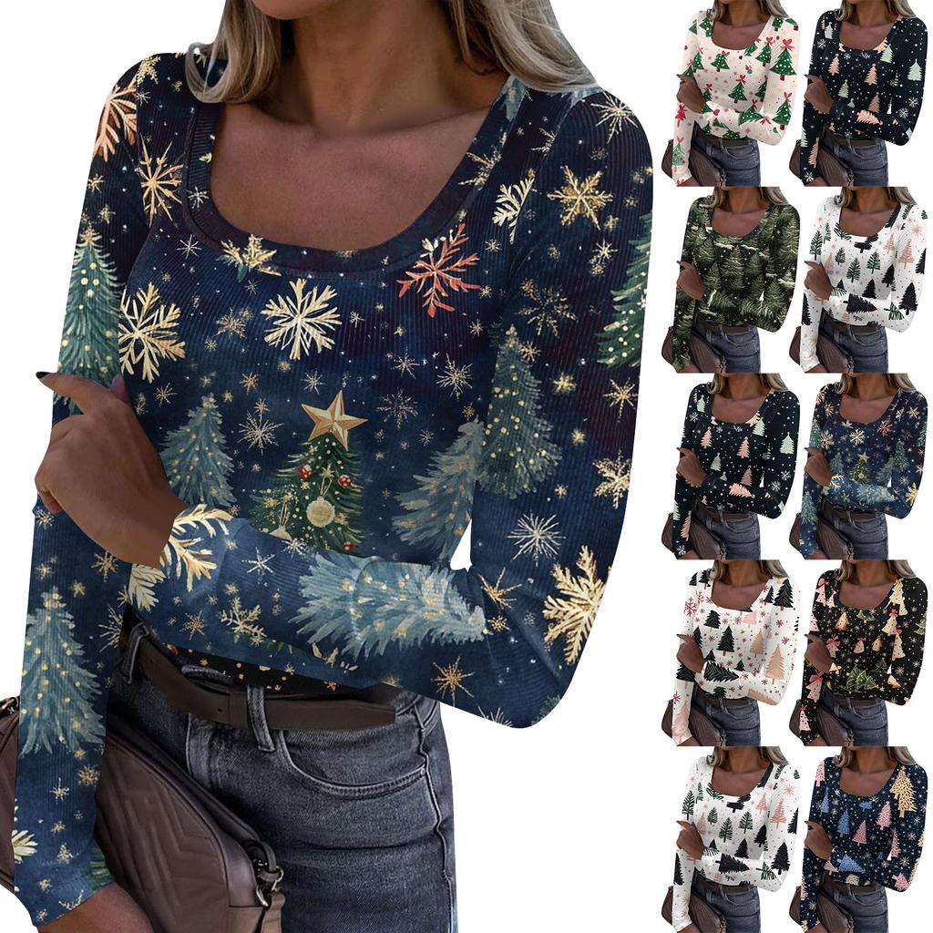 Women's Fashion Slim Bottom T-Shirt Christmas Printed U Neck Pullover Long Sleeve Top