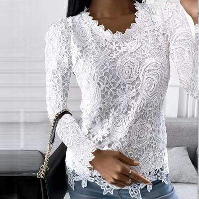 Autumn New Fashion Blouse Tops Women Long Sleeve Lace Patchwork Blouse Ladies Casual Sexy V-Neck Solid Color Street Shirt
