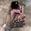 Red Lip Phone Case For iPhone 16 15 14 13 12 11 mini Pro Max X XR XS 8 7 Plus Anti Fall Matte Back Lip Leopard Print Cover