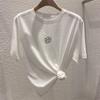 Λευκό Μπλουζάκι με Φλοράλ Μοτίβο Κοντομάνικο Καλοκαιρινό Ευέλικτο Καθημερινό Γυναικείο Τοπ Φαρδύ Στρογγυλή Λαιμόκοψη Oversized Στυλ T-shirt