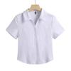 Γυναικείο T-shirt Άνοιξης και Καλοκαιριού με Κοντό Πέτο και Κουμπιά, Ψηλόμεσο, Λεπτό, Λεπτό, Με Μισό Μανίκι, Γυναικείο Ελαστικό Μπλούζα