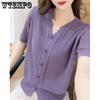 Women's T-shirt Fake Two V-neck New Korean Version Fashionable Casual Thin Breathable Knitted Shirt