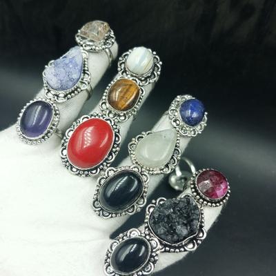Gemstone Rings, Natural Assorted Gemstone Rings for her, german Silver Rings, Handmade Jewelry Ring, vintage Rings, bulk rings, chunky rings