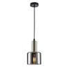 Lampe cylindrique en suspension en verre fumé mat Ø13 cm et 150 cm de cordon en tissu
