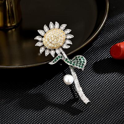 Luxury Aaa + Zircon Sunflower Corsage Personalized Atmospheric Copper Gold Plated Plant Brooch