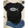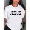 Jesus is God print solid color T-shirt, round neck short sleeve casual top, suitable for summer and spring, women's clothing