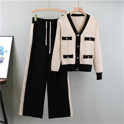 Summer Women Striped Knitted Sweater Trouser Two Piece Set Women Polo Collar Pullover Tops and Ankle Length Pant Tracksuit