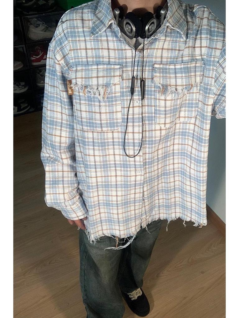 2024 Άνοιξη Αμερικάνικο Ρετρό Καρό Ανδρικό/Γυναικείο Φαρδύ Μακρυμάνικο Πουκάμισο