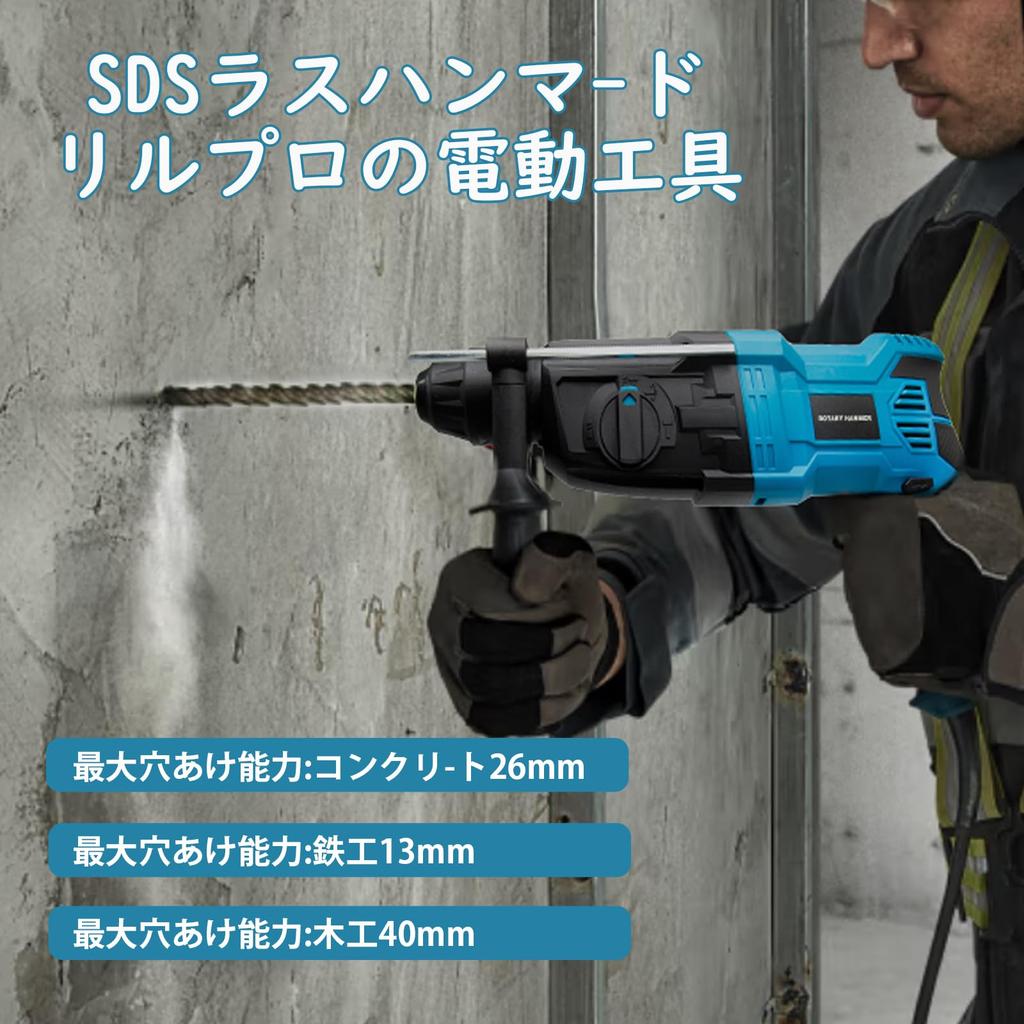 This 1100W corded hammer drill is equipped with a pure copper motor and provides powerful power, making it easy to crush concrete and drill holes in metal. ■Drill capacity: Concrete 26mm/Ironwork 13mm/Woodwork 40mm ■Number of hits: 0-1200rpm ■Maximum number of hits: 4300bpm ■Power cord length 1.8m