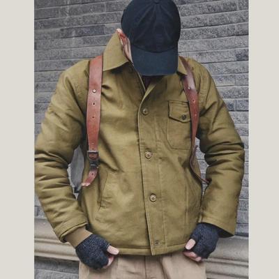 Λάτρεψα το Χακί N1 Ανδρικό Ρετρό Μπουφάν από Βαμβάκι Δέρματος Αρνιού με Βελούδινη Επένδυση