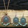 Fashion Retro style iron leaf wooden disc set earrings necklace For Ladies