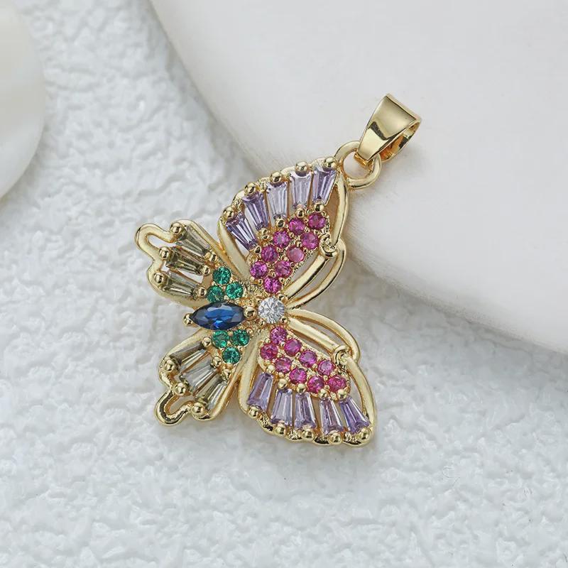 Επίχρυσωμένο Χάλκινο Κρεμαστό Πεταλούδα με Ζιργκόν για DIY Κοσμήματα