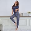 2 Τεμάχια Γυναικείες Πυζάμες Μεγάλο Μέγεθος Κοντομάνικη Λευκή Ριγέ Παντελόνι με Κορδόνι Φοιτητική Φόρμα για το Σπίτι Μπλουζάκι με Τυπωμένο Γράμμα Κυρίες
