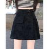Deerskin Velvet Little Black A-Line Skirt - Women's High-Waist, Arm-Wrapped Design for 2025 Autumn/Winter