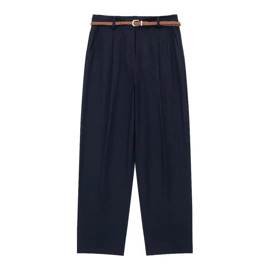 2024 Καλοκαίρι Ευρωπαϊκό & Αμερικάνικο Στυλ Ψηλόμεσο Λινό Μίγμα Ρετρό Ίσιο Παντελόνι για Γυναίκες
