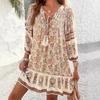 Vintage print φόρεμα Γυναικεία μόδα Boho Σέξι V λαιμόκοψη Φαρδιά Φορέματα Γυναικεία Καλοκαιρινά Γυναικεία Ρούχα Vestidos Νέα