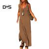 Αυτό το γυναικείο φόρεμα είναι κατασκευασμένο από μαλακό πολυεστερικό ύφασμα, εξασφαλίζοντας άνεση όλη την ημέρα. Η σιλουέτα σε γραμμή Α και το μποέμ στυλ αυτού του μακριού, χαλαρού casual φορέματος αποπνέουν μια απλή αλλά κομψή ατμόσφαιρα. Με λαιμόκοψη V και αμάνικο σχέδιο, αυτό το φόρεμα είναι τέλειο για όσους αναζητούν άνεση και μόδα.