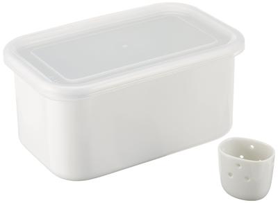 Noda Horo Pickle Container Storage Container Enamel Square Rectangle with Water Drainer White Series Pickled Beauty Made in Japan 3.2L TK-32