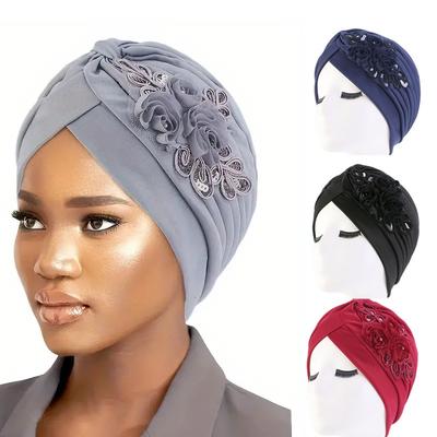 1PC Sunscreen Hijab Fashion Flower Turban Retro Elastic Headwraps Ethnic Solid Color Elegant Rhinestoned Bandana Cap