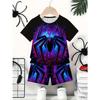 παιδικά unisex, κοντό μανίκι, 3D εκτύπωση, Καλοκαίρι, T-Shirts, Σορτς, Σετ ρούχων, Δύο τεμάχια, Κινούμενα σχέδια, Casual,
