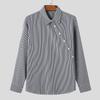 INCERUN Ανδρικά πουκάμισα με γιακά ρεvers, μακριά μανίκια, διαγώνια κουμπιά, ριγέ, φαρδιά γραμμή, casual