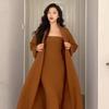 Women's French Retro Red Knitted Cardigan & Tube Top Set for Autumn/Winter