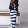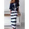 Μπλουζάκι T-Shirt με Σχέδιο Άγκυρας Βάρκας & Μακριά Φούστα με Ρίγες Γυναικεία Σετ Δύο Τεμαχίων Μόδα Off Shoulder Σετ Δύο Τεμαχίων Μπλούζες και Φούστες