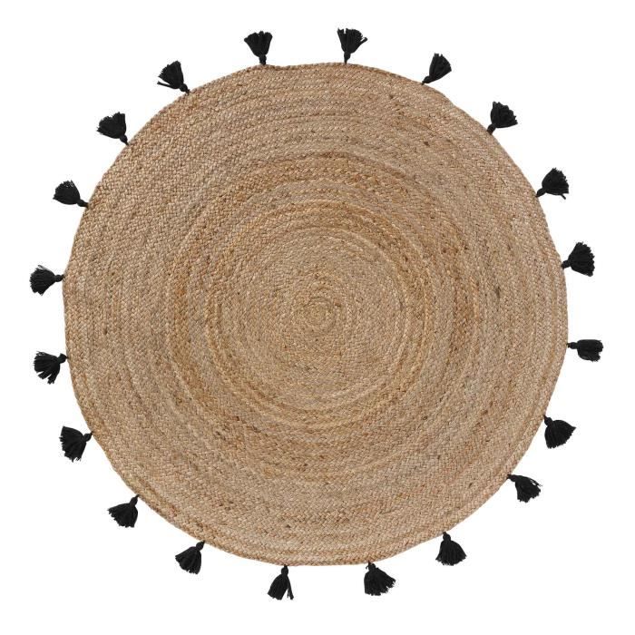 Tapis rond - Shira - 120 cm - Jute - Noir - Style naturel