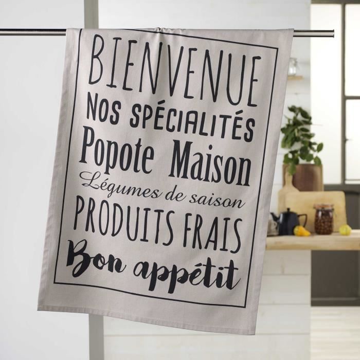 Torchon de cuisine - Popote Maison Lin - 50x70cm - 100% coton - Oeko-Tex® - Beige