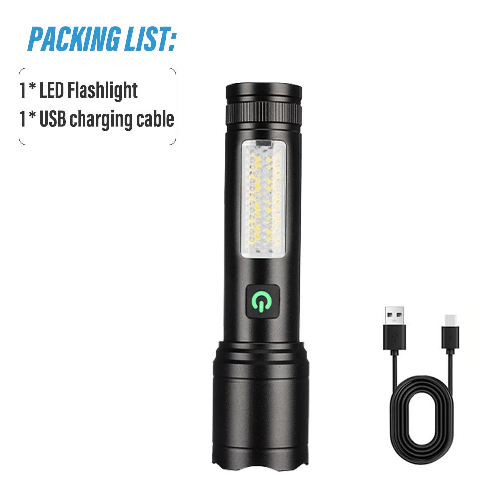 Super Bright LED Flashlight Rechargeable Torch Portable Work Light Outdoor Camping Light Can Telescopic Zoom Support USB Output
