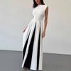Καλοκαιρινό Γυναικείο Όρθιος Γιακάς Ταμπεραμέντο Ελαφρώς Ώριμο Αέρινο Φόρεμα Πλισέ Συνδυασμός Χρωμάτων Εφαρμοστό στη Μέση Φόρεμα Μακριά Φορέματα