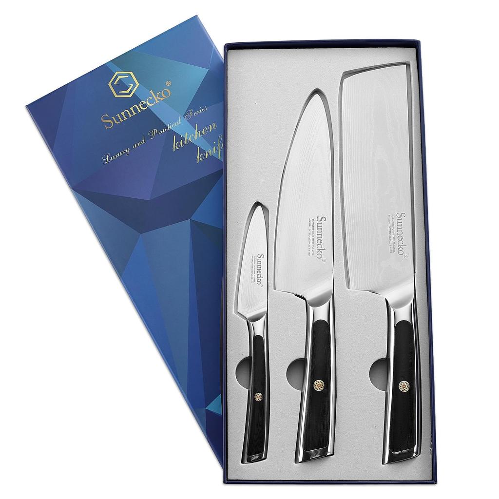 [Excellent sharpness, multifunctional] Nakiri knife total length: 307MM, blade length: 180mm, width: 53mm, weight: 300g, beef knife total length: 285MM, blade length: 165mm, width: 45mm, weight: 240g, peeling knife total length: 197MM, blade length: 85mm, width: 22.5mm, weight: 98g, material: Damascus. This Damascus steel knife uses the highest grade core material, VG10, a high-grade knife steel, and is also made with 73 layers of Damascus steel, has a beautiful Damascus pattern, has a hardness of HRC60±1, and has toughness, impact resistance, and durability. The blade is only 2mm thin and sharp, and the hard steel part is wrapped in a soft part to prevent it from bending or breaking. It is sharper and more durable than ordinary steel. Knives are used for different purposes: Gyuto for meat, Nakiri for vegetables, and Deba/Sashimi knives for fish, but this Damascus steel knife set is a versatile knife that can be used for meat, vegetables, fish, etc. This is the perfect houcho for home use. (Please note that it is not dishwasher safe)