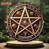 1pc 2d Flat Witch Star Round Wooden Sign - 20cm, Beautiful Five-pointed Star Themed Wreath Sign for Home, Garage, Hotel, Garden, Cafe Decoration