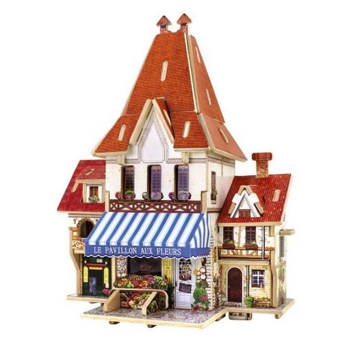Kits en Bois - Magasin de Fleur Français - kit en bois à assembler - 44 pièces - 15,5 x 12,5 x 20 cm - à partir de 6 ans Robotime