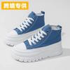 Γυναικεία παπούτσια με αυξημένο ύψος, μονόχρωμα, ευέλικτα παπούτσια από καμβά, ψηλά κορδόνια με κορδόνια, άνετα, αναπνεύσιμα γυναικεία