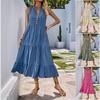Women's V Neck Summer New Solid Color Sleeveless Stand Collar A Line Dress