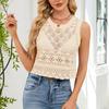 Ladies Sleeveless Solid Color Hollow Out Knitted Pullover Tassel Vest Waistcoat Cover-Up Top
