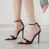 Pointed Patent Leather Sexy Open Toe One-word Buckle Strap Women Sandals Cover Heeled Thin High-heeled Party Shoe Sandalias