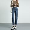 Straight Jeans for Women with High Waist Slim French Stretch Nine-point Pants for Women In Autumn and Winter Loose Light Blue Retro Blue