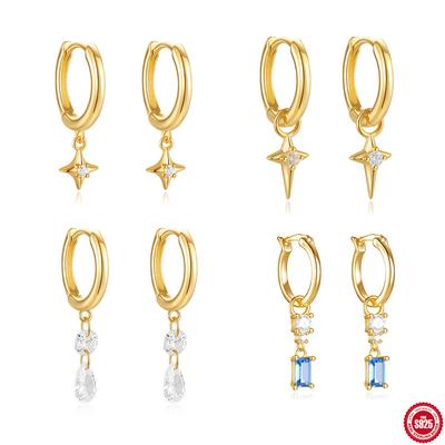 S925 Sterling Silver Kite Stone Ear Ring Earrings, Creative Style Fashion Simple Women'S Ear Buckle Earrings