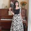 Step into summer elegance with this knee-length floral dress that exudes charm and sophistication. Crafted from high-quality polyester, the dress features enchanting French puff sleeves for a touch of vintage flair. Its waist-slimming design complements your silhouette, making it perfect for garden parties, brunches, or any warm-weather occasion. The soft and lightweight material ensures comfort throughout the day, while its vibrant floral pattern adds a splash of color to your wardrobe. Embrace the season in style with this beautifully designed dress.